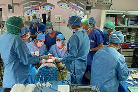 Du prélèvement jusqu’à la transplantation, l’intervention a duré 27 heures en cumulé. Extrêmement complexe, elle a été menée par une équipe de dix chirurgiens, issus des HCL et de plusieurs autres CHU français, dont le Pr Franck Jégoux du CHU de Rennes. Ils se sont relayés nuit et jour avec chacun une mission principale, selon la spécialité, et un temps d'intervention donné.